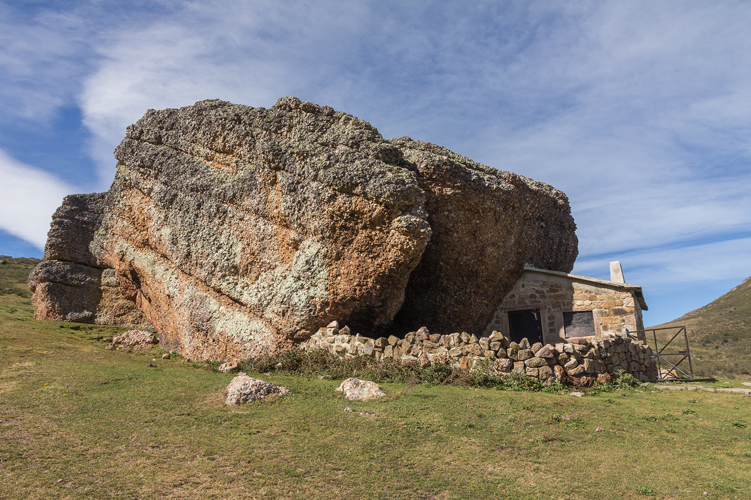 Una vez en el collado ya solo nos quedan unos metros para llegar al destino, la cabaña pegada a uno de los cantos mas grandes de Sejos, lugar donde descansamos y comemos el bocata. Estamos en los cantos de la borrica, enormes bloques erráticos de conglomerado descendientes de la época glaciar, o como cuenta alguna leyenda, fue el Ojancano quien en su empeño de romperlo todo tiraba las piedras sobre los pastos de Sejos. Sea como fuere el sitio es espectacular, merece la pena venir aquí si o si.